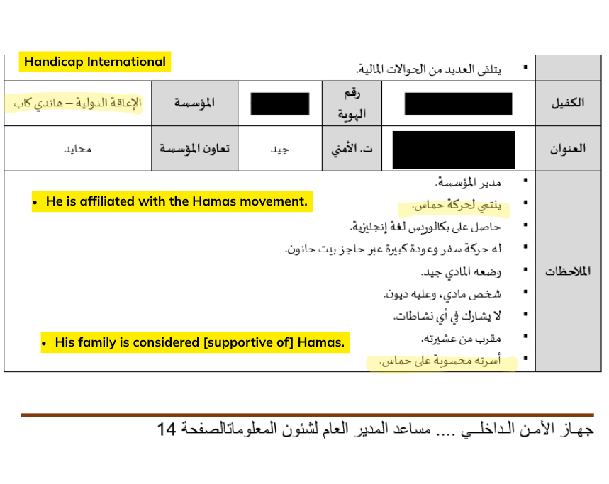• Der Direktor von Handicap International in Gaza ist mit Hamas affiliiert.