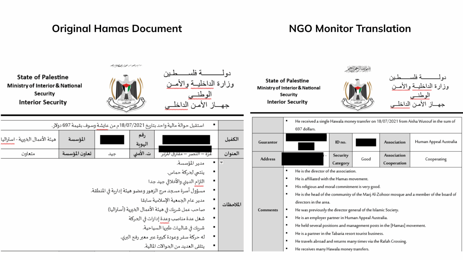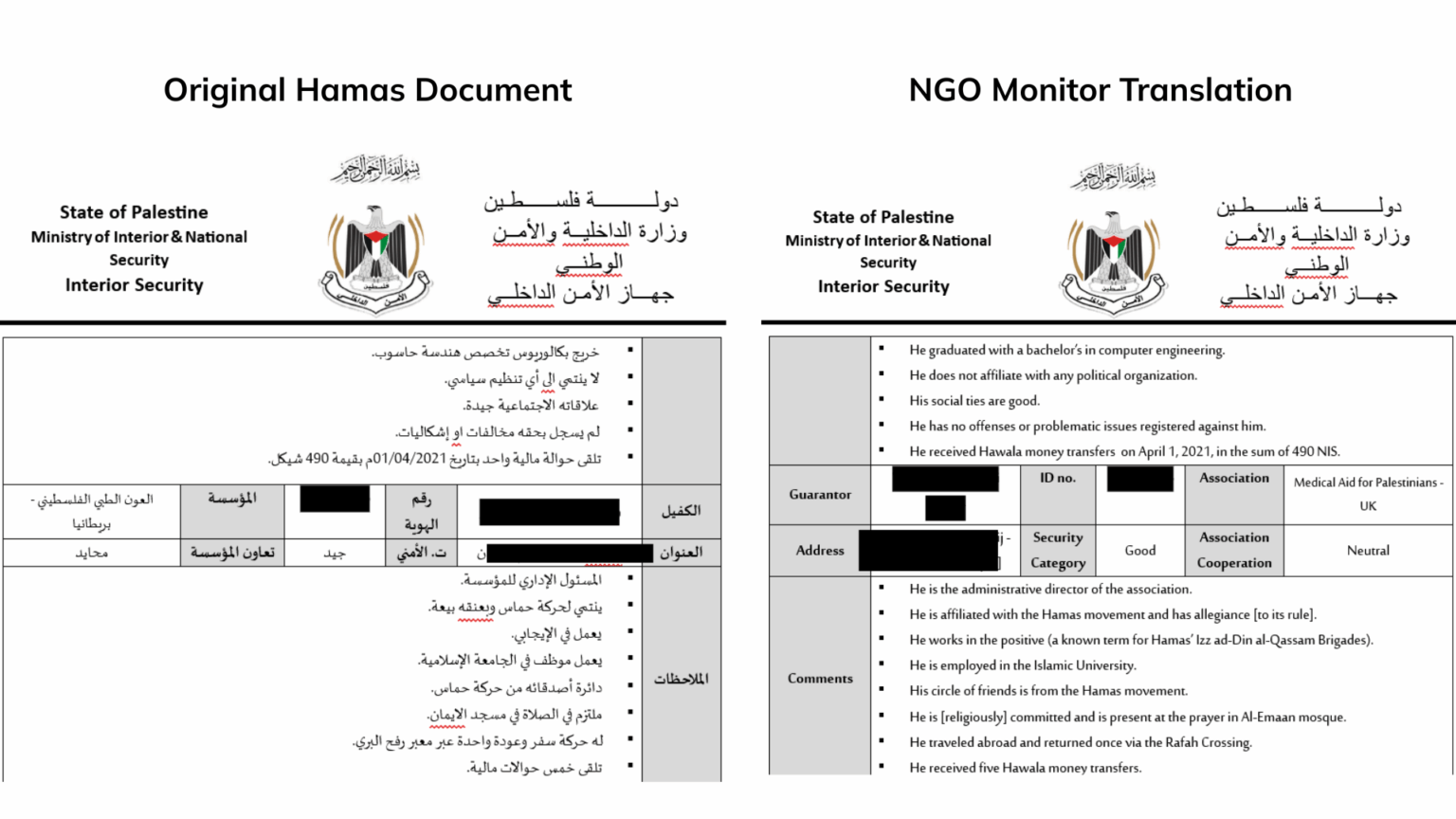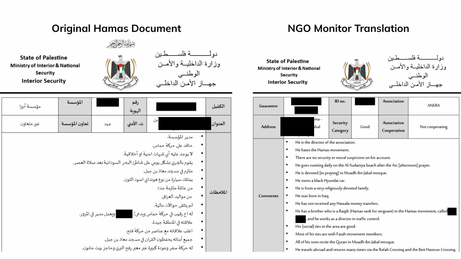 Interne Verwaltungsakte des Hamas-geführten Innenministeriums über NGO-Überwachung | Bildzitat nach § 51 UrhG. Quelle: ngo-monitor.org