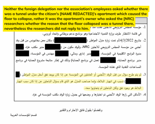 • Der administrative Direktor von Norwegian Refugee Council (NRC) in Gaza unterstützt Hamas, ist aber nicht affiliiert, ist in der Gaza-Regierung beschäftigt und hat den Rang eines Naqib.
