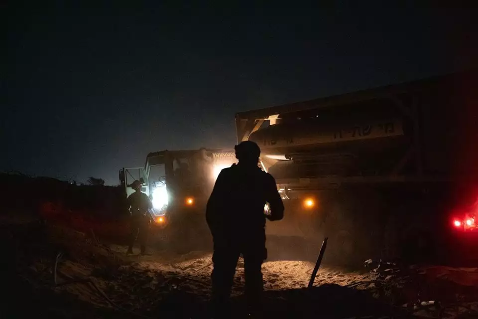IDF Soldaten überblicken israelische Grenzposition im Abendlicht nahe Libanon